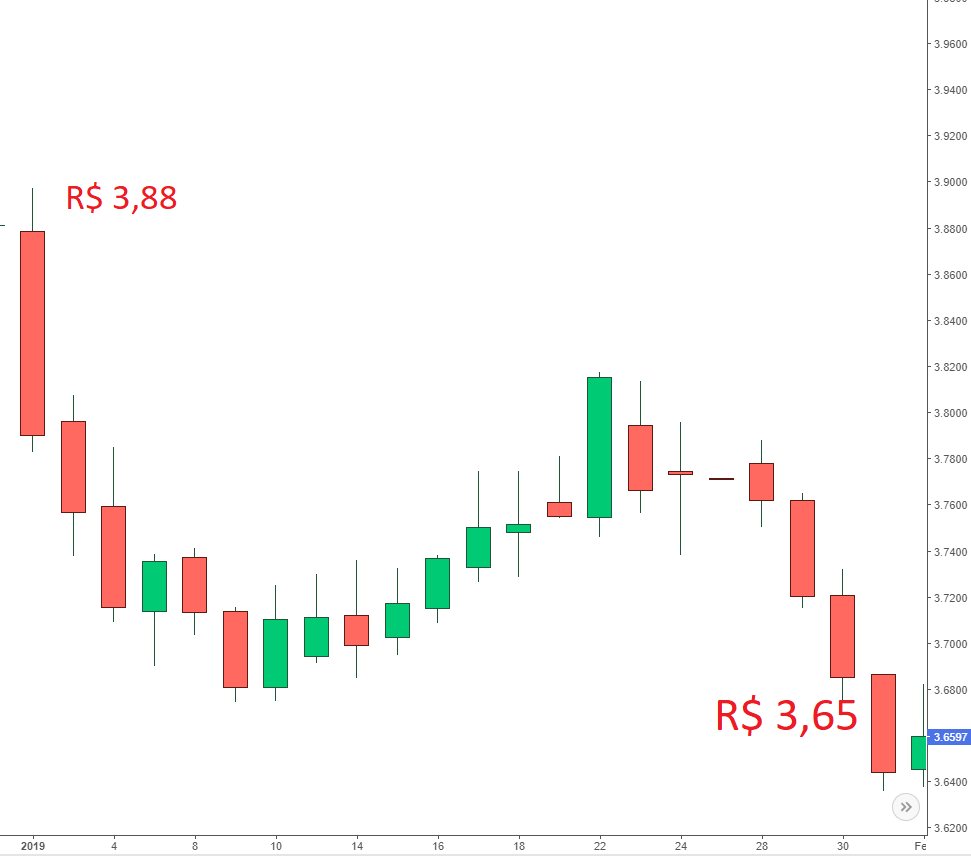 Janeiro de 2019 termina com o dólar a R$ 3,65. Mesmo com a tensão entre EUA e China, os investidores internacionais se sentem confiantes com o apoio de grande parte da população a Jair Bolsonaro, demonstrando possível facilidade na aprovação de reformas junto ao Congresso. A indicação de uma nova previdência pesada confirma atenção especial do governo em relação à política fiscal do país.