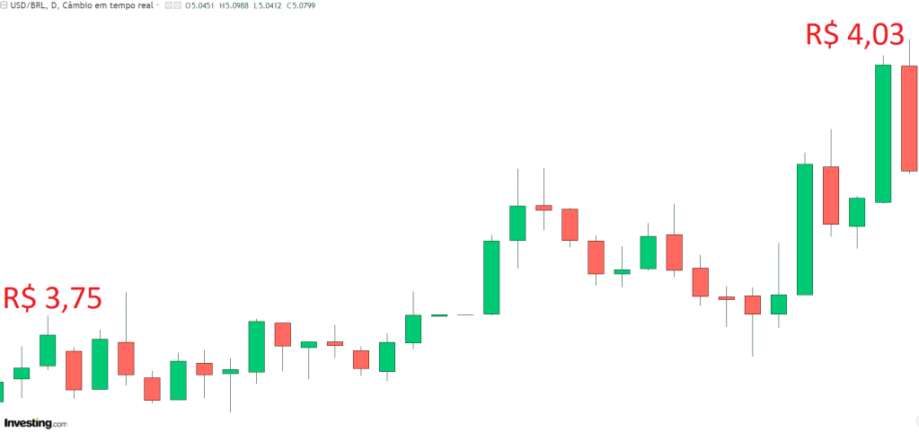 Mesmo com investidores confiantes em relação a aprovação da reforma, dólar atinge R$ 4,03. O cenário externo começa a ganhar importância relevante no preço da moeda. As tensões entre EUA e China aumentam após Donald Trump aumentar as taxas sobre produtos chineses, gerando retaliação de Pequim, que prometeu aplicar tarifas em produtos americanos.